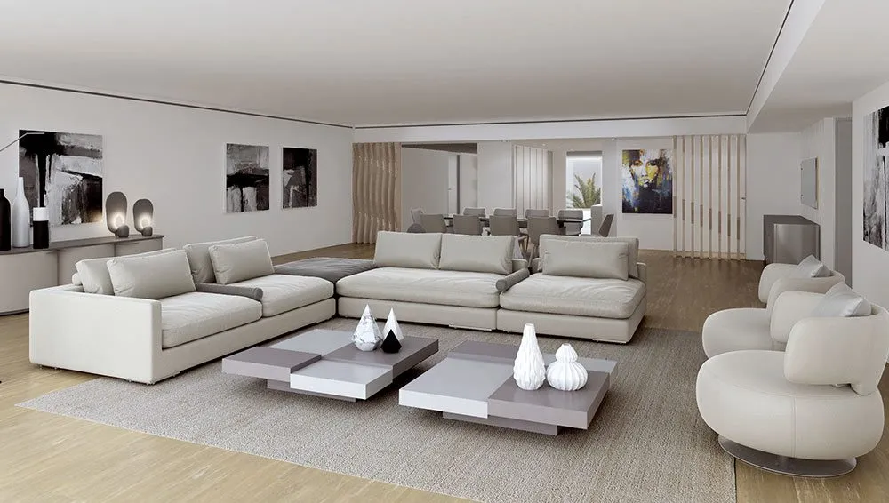 Residence Designed by Rita Chraibi at the Surf Club Four Seasons with a total living area of 8,000 square feet with fully finished interiors / five beds, 6.5 exquisite terrace facing the ocean, and a balcony with sunset views / the Bay. "Life is a question of details," says Rita Chraibi. This residence at the Four Seasons was custom-designed, often described as a sky-view beach house with first-class services. Moments of life: She opened the spaces and thought out the interior space in such a way as to blend perfectly with the exterior. The high-end finishes have created an atmosphere of hidden beauty and a space to live in peace and serenity.